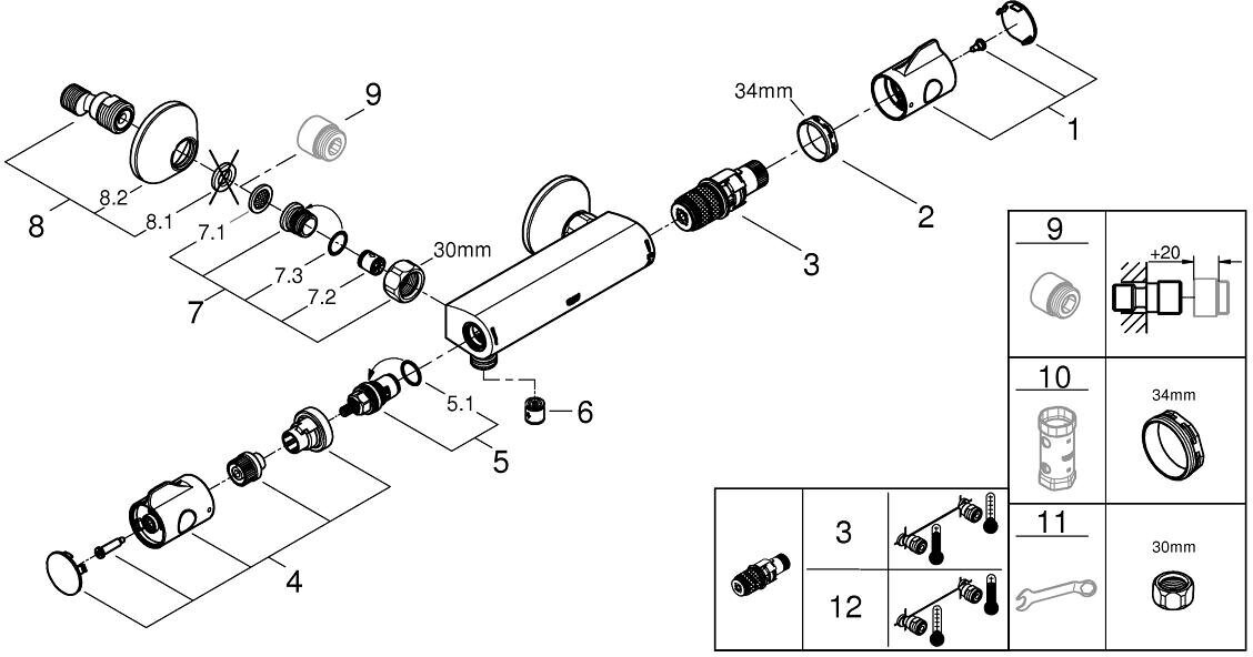 Смеситель GROHE Grohtherm 1000 для душа однорычажный без излива Grohtherm 800