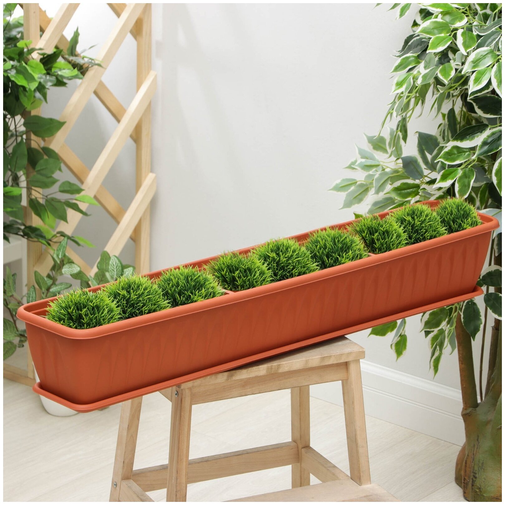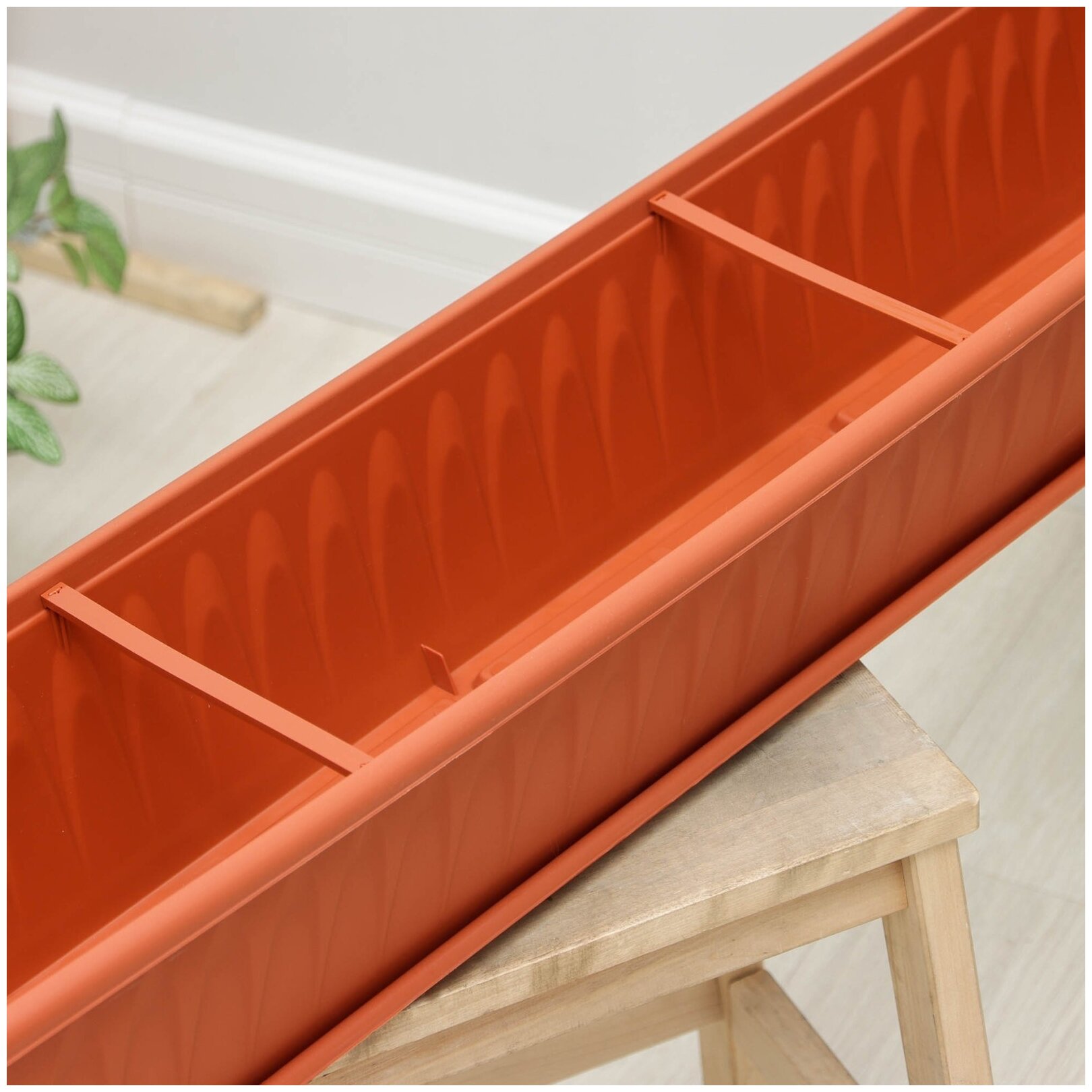 - Благодаря поддону поверхность, на которой стоит цветочный ящик, остается сухой и чистой.