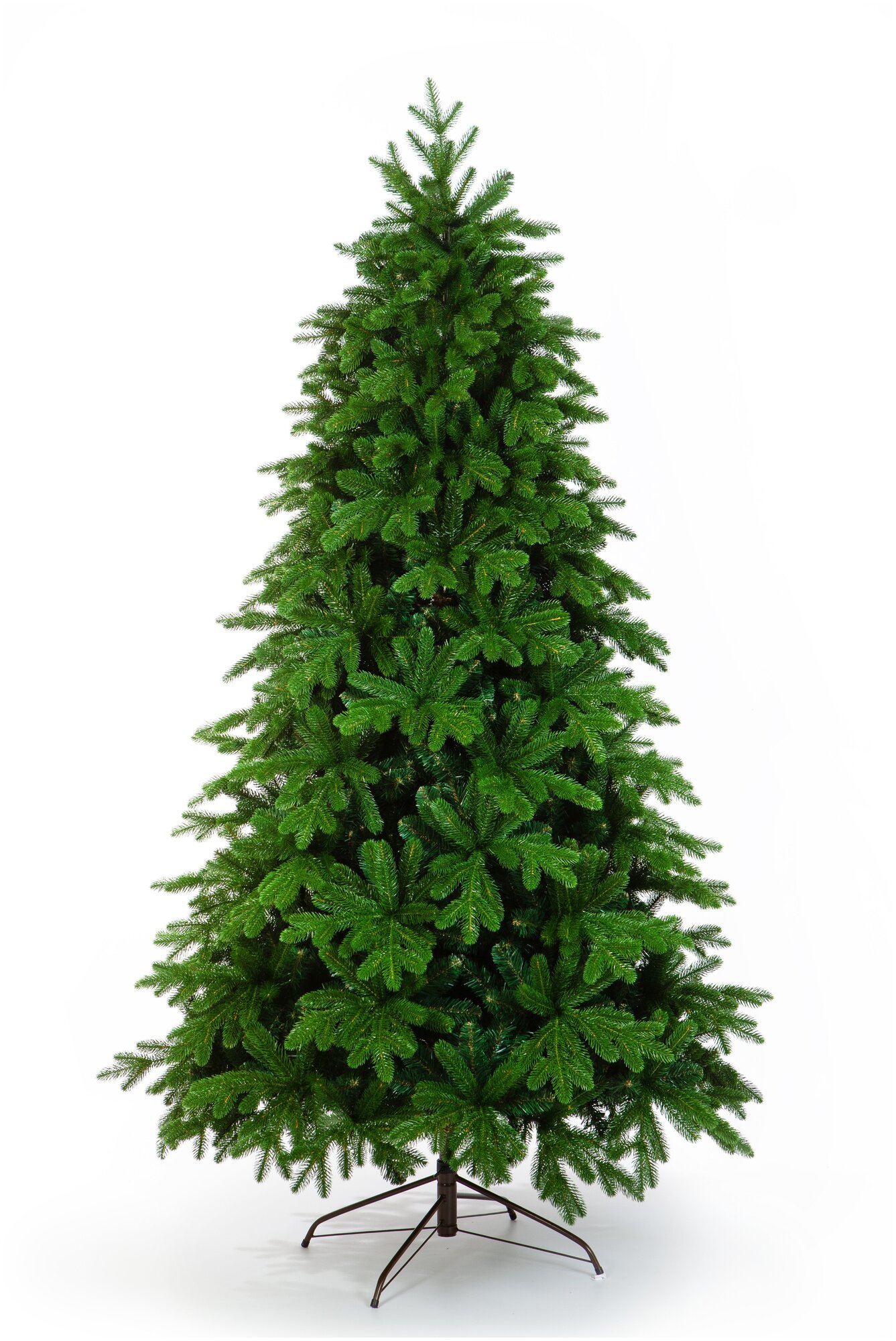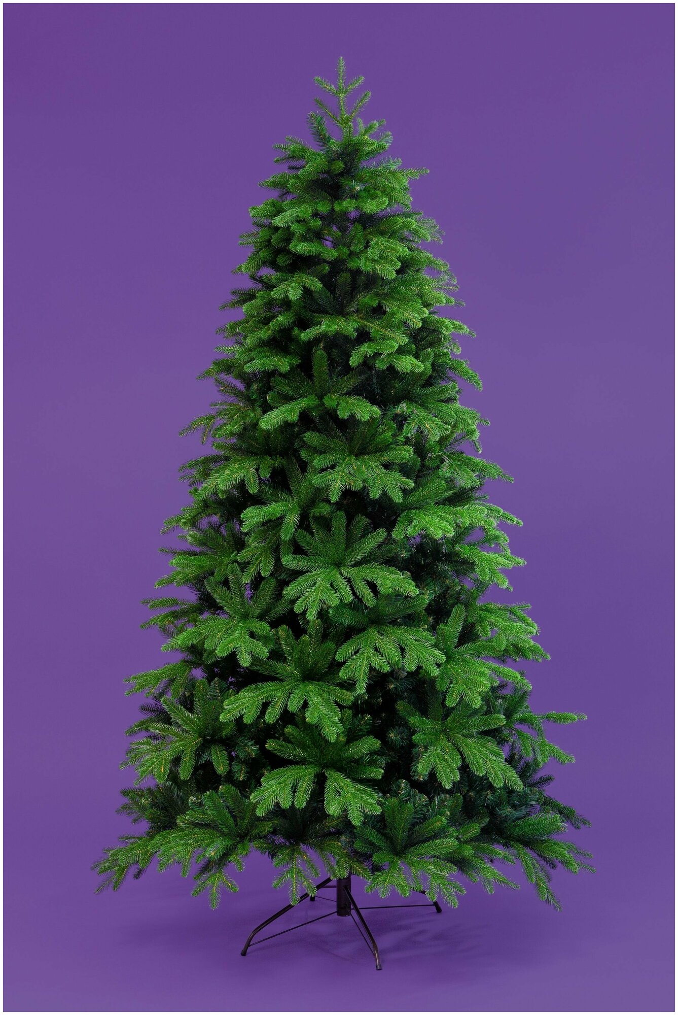 Это стройная ель с богатой и пышной хвоей. Выполнена из двух материалов: ПВХ-пленка и литье. Пленку практически не видно. Она используется у ствола, чтобы создать дереву объем.