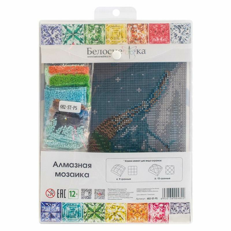 Комплект искусственных камней изготовлен на основе эпоксидной смолы, данный материал обладает высокой прочностью, износостойкостью и умеренной усадкой. Элементы представлены двумя типами - на 9 и 13 граней. Постепенно заполняя схематичные ряды разноцветными камешками, вы будете в восторге от красивого детализированного изображения.