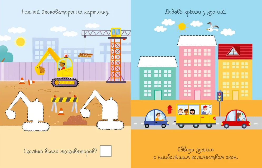 Более 240 наклеек, красочные иллюстрации и интересные задания надолго захватят внимание вашего малыша. Он будет заниматься с удовольствием и узнает, как называется разная строительная техника,какие используют строительные инструменты и т.п.