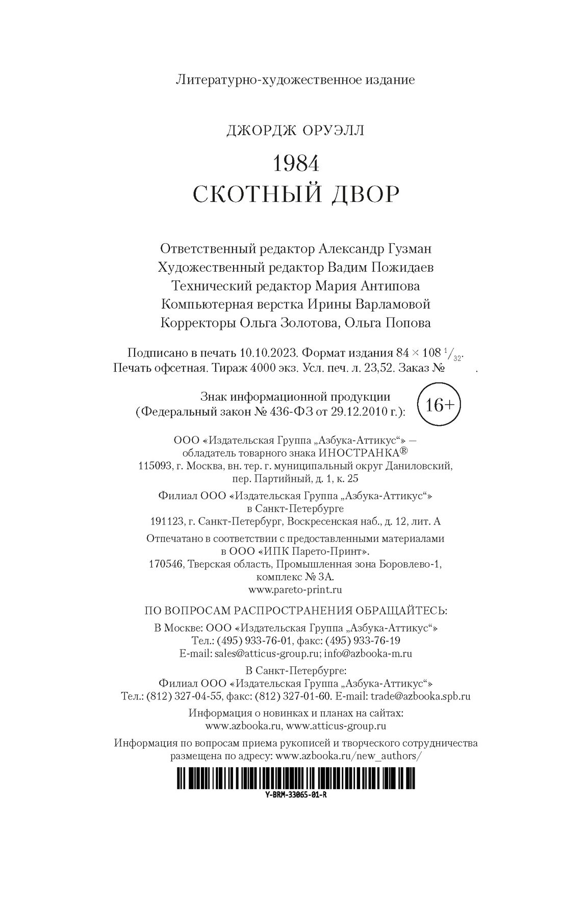 Книга: 1984. Скотный двор (Джордж Оруэлл); Иностранка, 2024