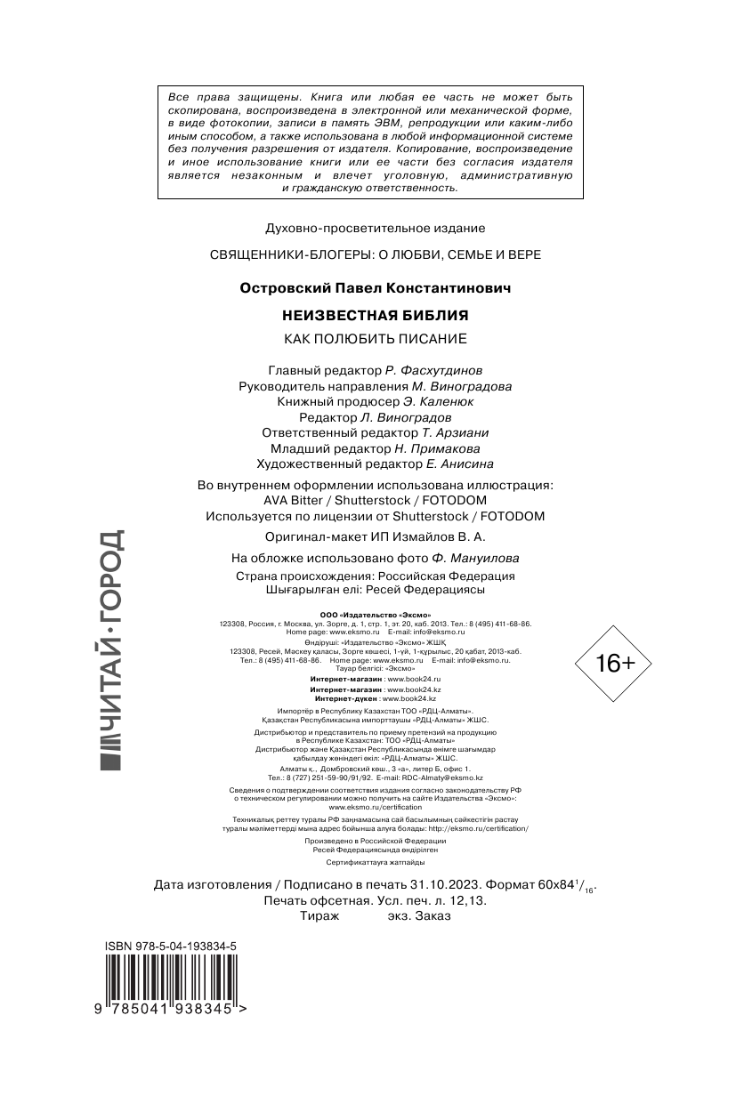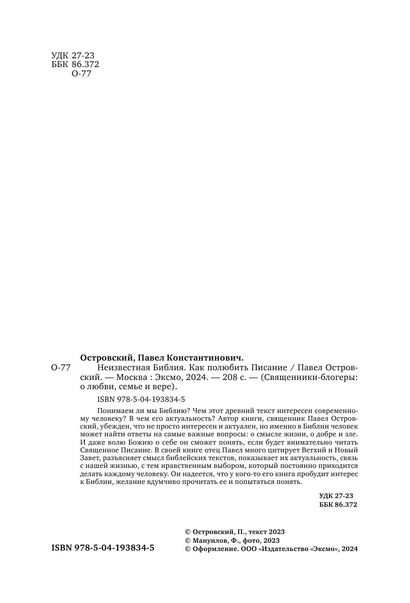 Неизвестная Библия. Как полюбить Писание (Островский Павел Константинович); ООО "Издательство "Эксмо", 2024