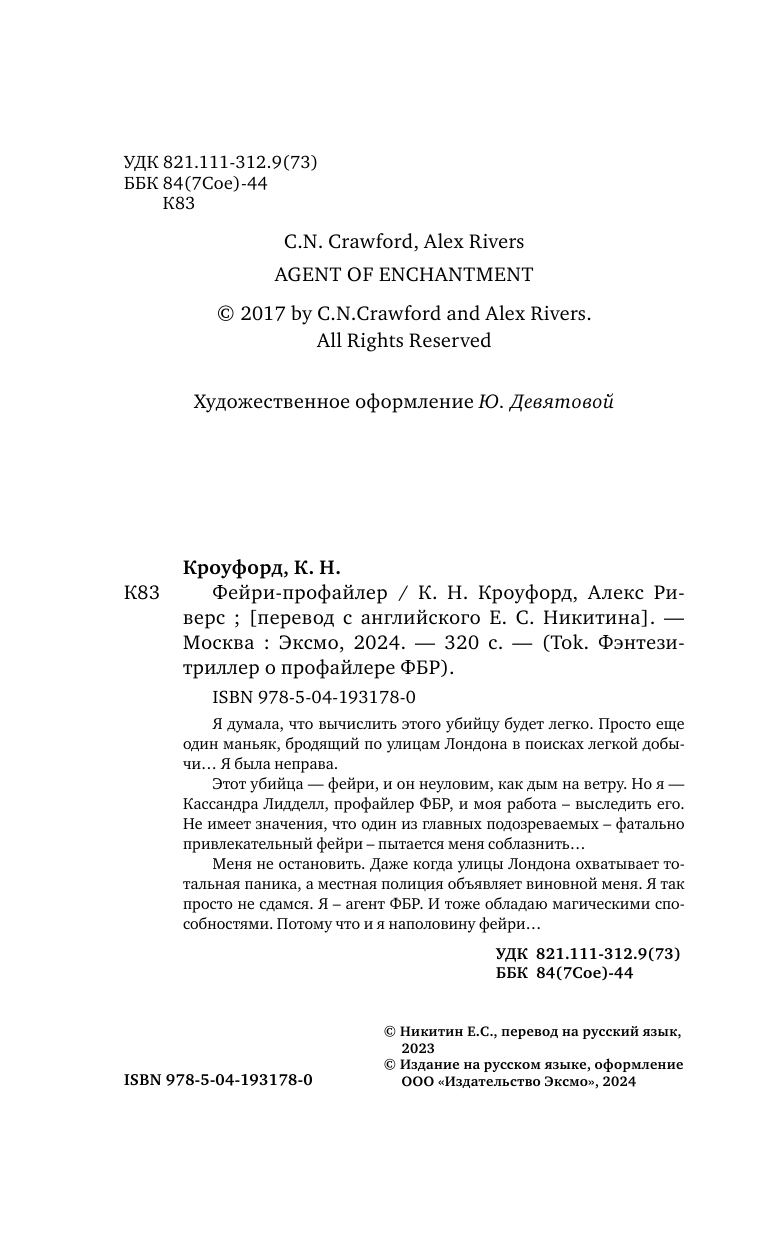 | Серия | Tok. Фэнтези-триллер о профайлере ФБР |