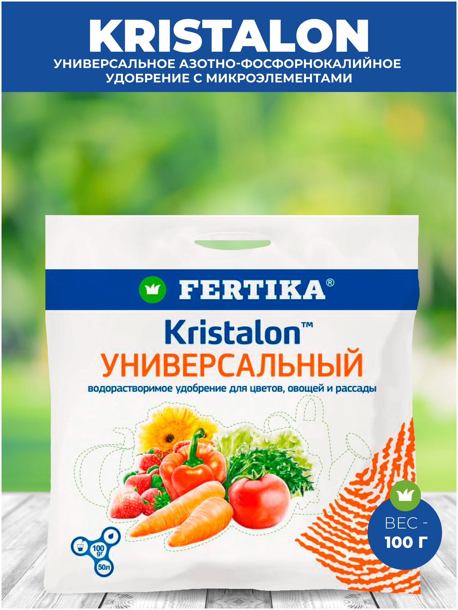 - Удобрение Кристалон Универсальный (Фертика) 100 г обзор FRT0048 производитель Fertika (Финляндия)