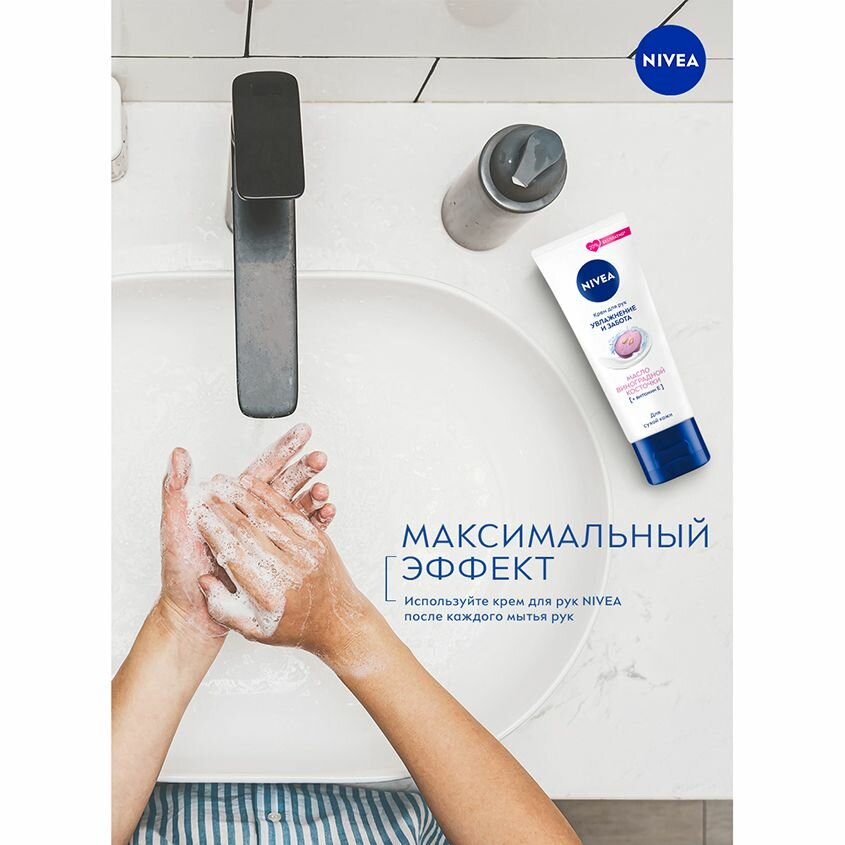 Чтобы кожа рук радовала мягкостью, гладкостью и молодостью, NIVEA предлагает использовать крем Увлажнение и забота с маслом виноградной косточки. Средство обладает приятной тающей текстурой, впитывается без остаточной жирности или липкости, подходит для экстренного восстановления и регулярного ухода за кожей с признаками сухости, огрубления, увядания.