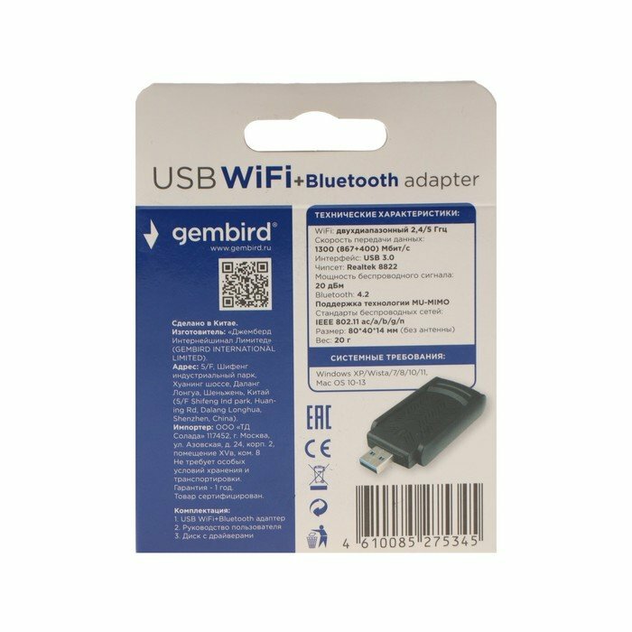 Bluetooth и Wi-Fi адаптеры Gembird
