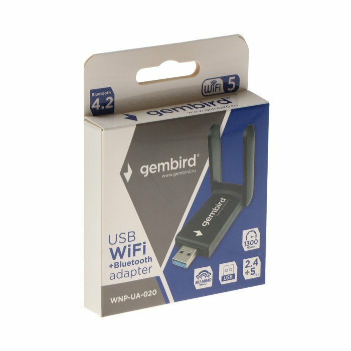 Адаптер сетевой Gembird WiFi BT двухдиапазонный с антеннами1300 МбитUSB802.11b/a/g/nc WNP-UA-020