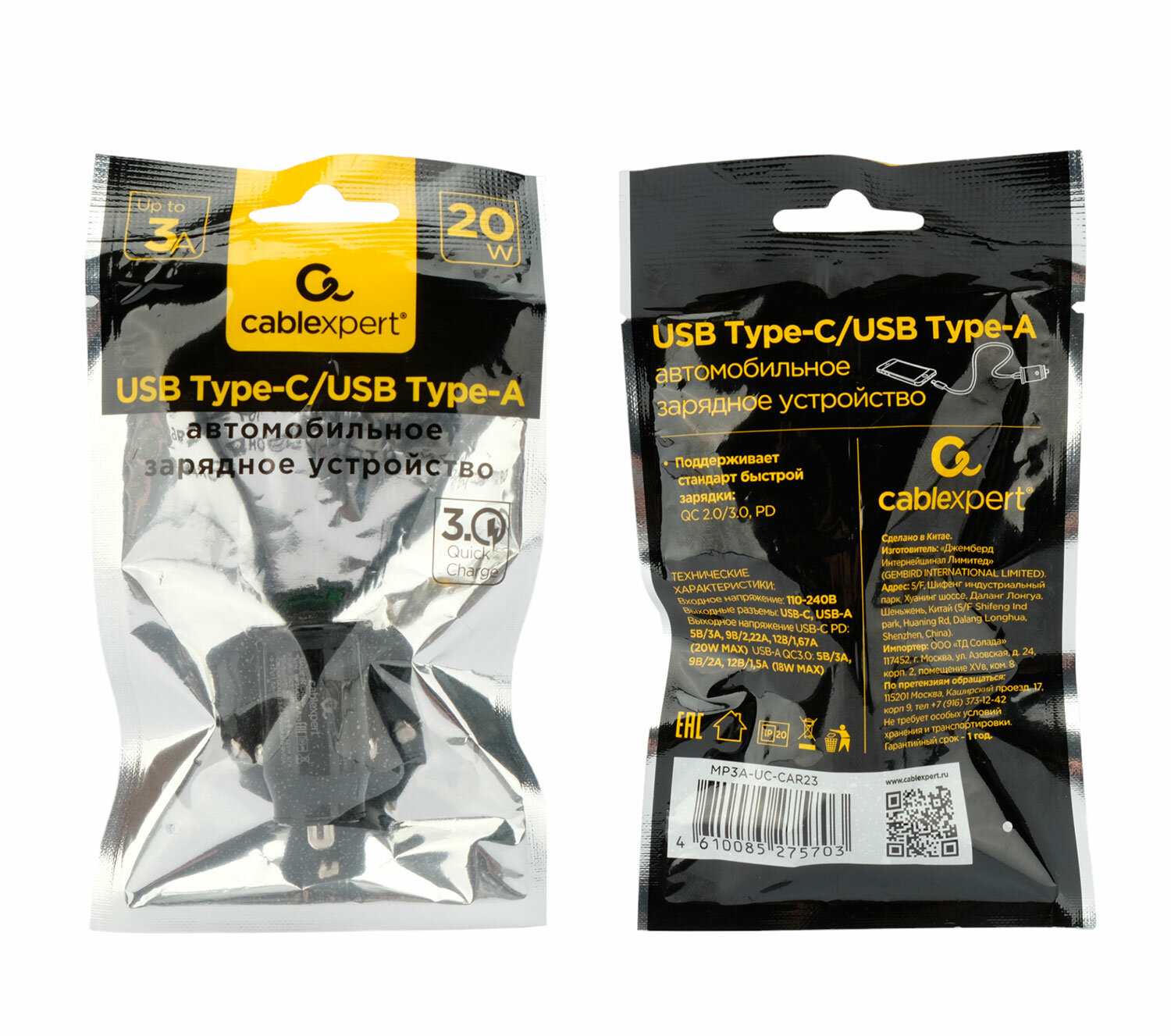 На сегодняшний день товар «Зарядное устройство автомобильное Cablexpert 20Вт QC3.0/PD 2 порта: USB и Type-C MP3A-UC-CAR23» можно купить с кешбеком в 2 магазинах: xcom-shop, Яндекс.Маркет