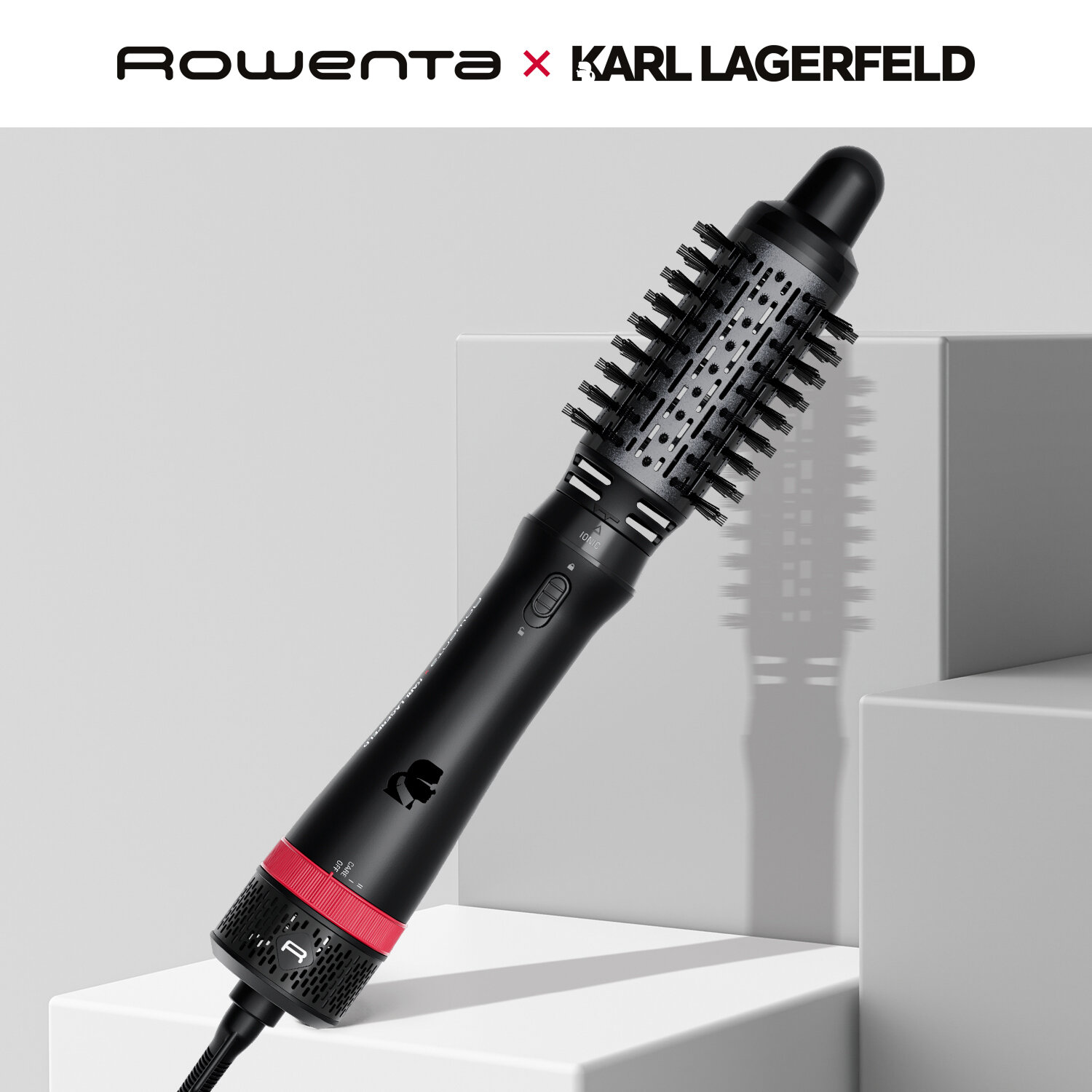 Фен-щетка Rowenta x KARL LAGERFELD Express Style 5-в-1 — ваш персональный стилист профессионального уровня. Создавайте образы, достойные лучших подиумов! 4 универсальные щетки подойдут для любой длины волос, система Glow Booster придаст укладке притягательное и до 2 раз более сильное* сияние, бережный режим защитит ваши волосы и кожу головы, а уникальный минималистичный дизайн, созданный при участии KARL LAGERFELD, подарит яркие эмоции во время укладки.