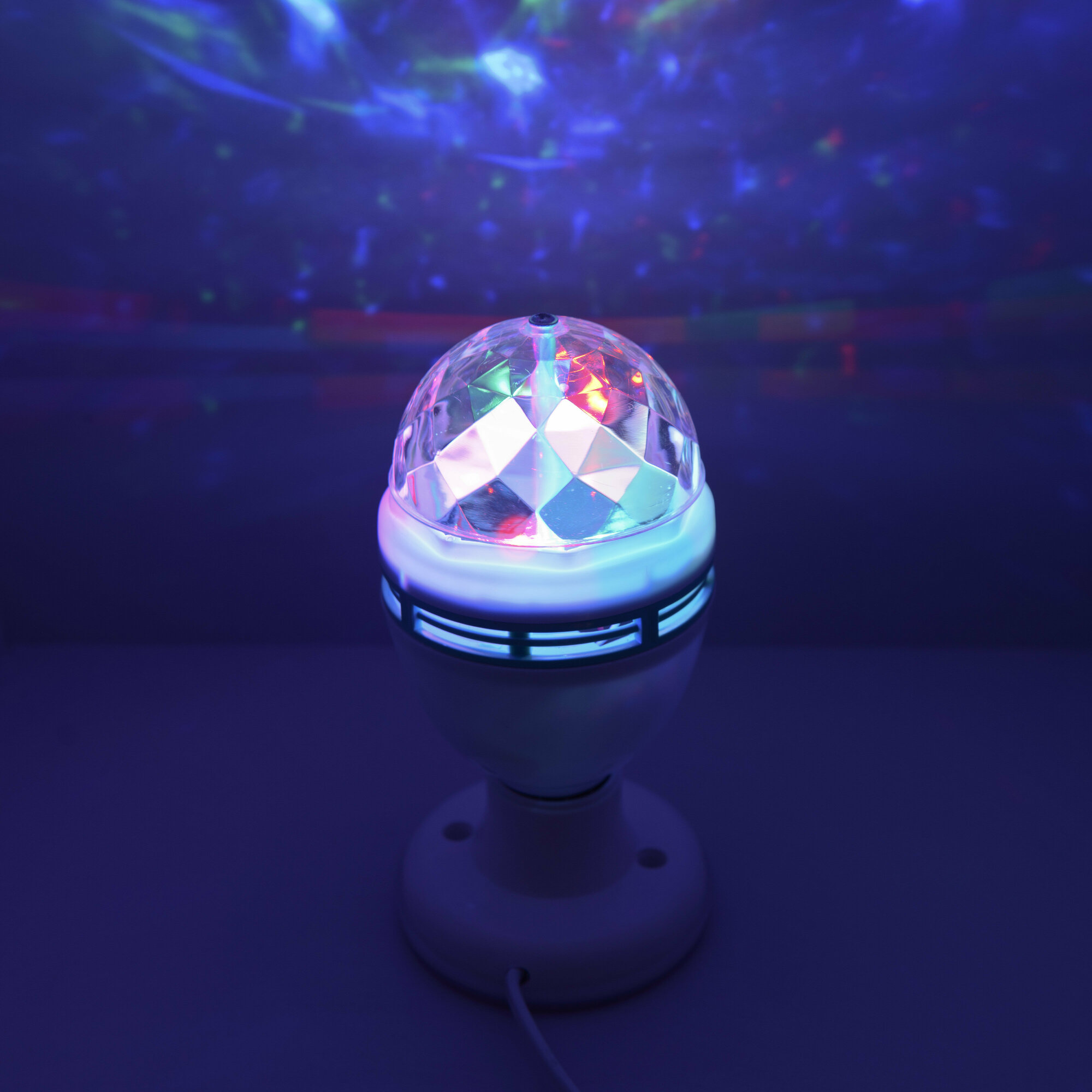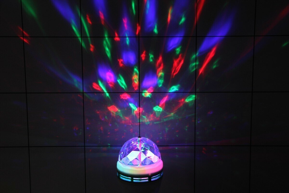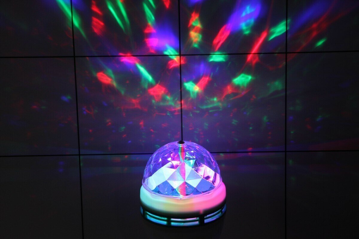 Выглядит как небольшая полусфера на подставке. Излучает 3 цвета свечения: красный, зеленый, синий. Автоматический режим работы - вращение.