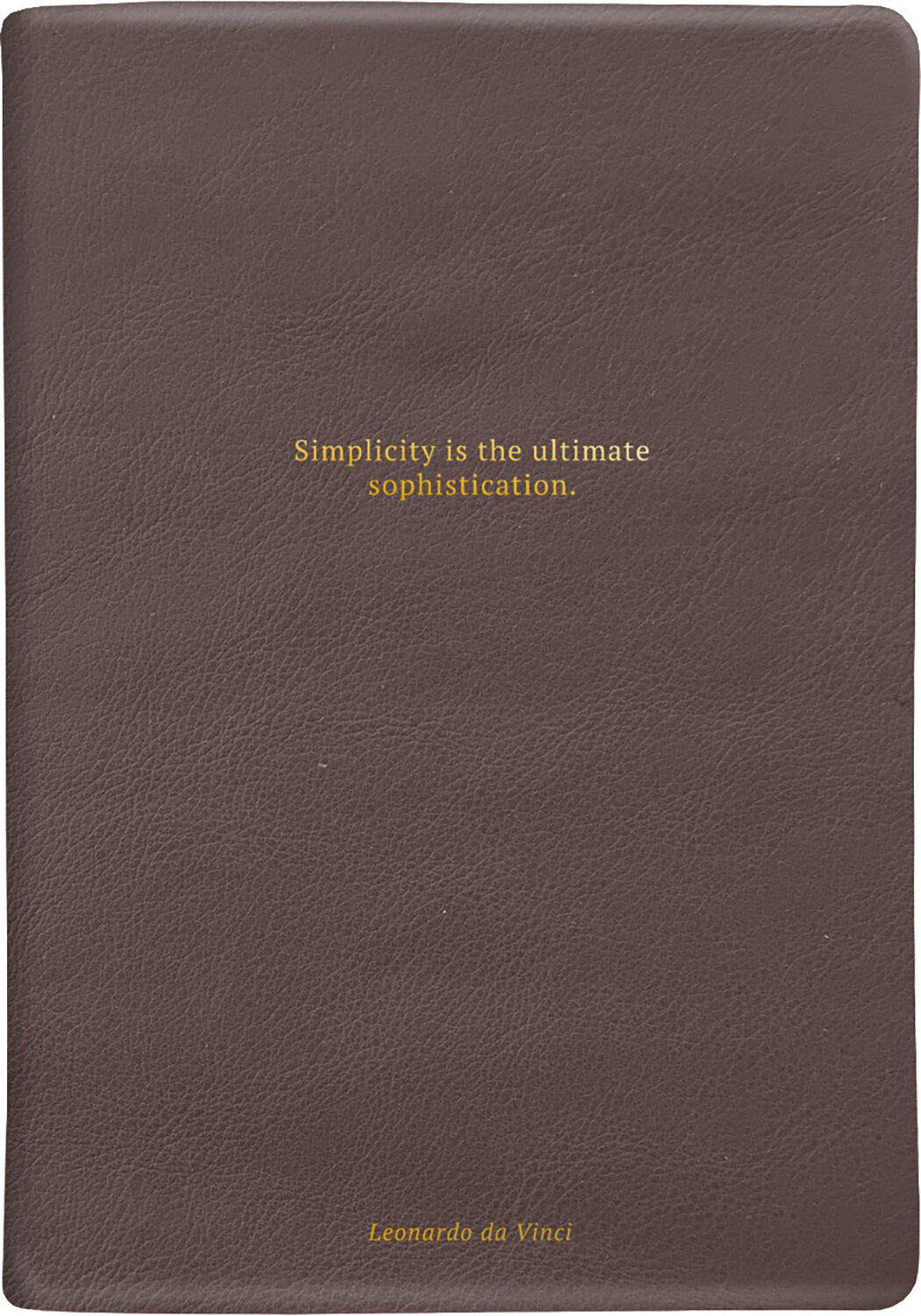 Обложка - интегральная, фактурная гладкая искусственная кожа, цвет - темно-коричневый. Блок - недатированный, 320 стр., скругленные уголки, 2 ляссе, бумага: слоновая кость, скругленные уголки, 70 г/м2, печать 2+2. Особенности: отделка золотой фольгой, 2 цветных ляссе.