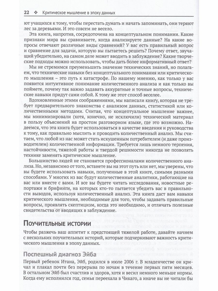 Книга, наполненная реальными примерами, показывает, как инструменты критического анализа при-меняются к проблемам в самых разных областях, включая выборы, гражданские конфликты, преступ-ность, терроризм, финансовые кризисы, здраво-охранение, спорт, музыку и космические путешествия.
