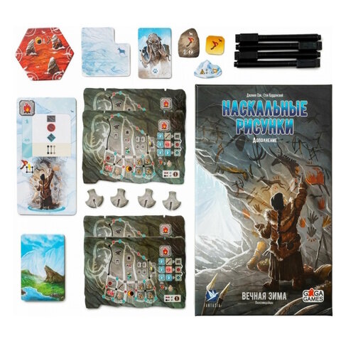 | Комплектация | тайл местности; планшет мегалита; 4 планшета пещерных рисунков; 8 опор для планшетов рисунков; 4 стираемых маркера; колонка действия «Рисование»; 15 карт племени; 5 карт животных; 5 карт культуры |