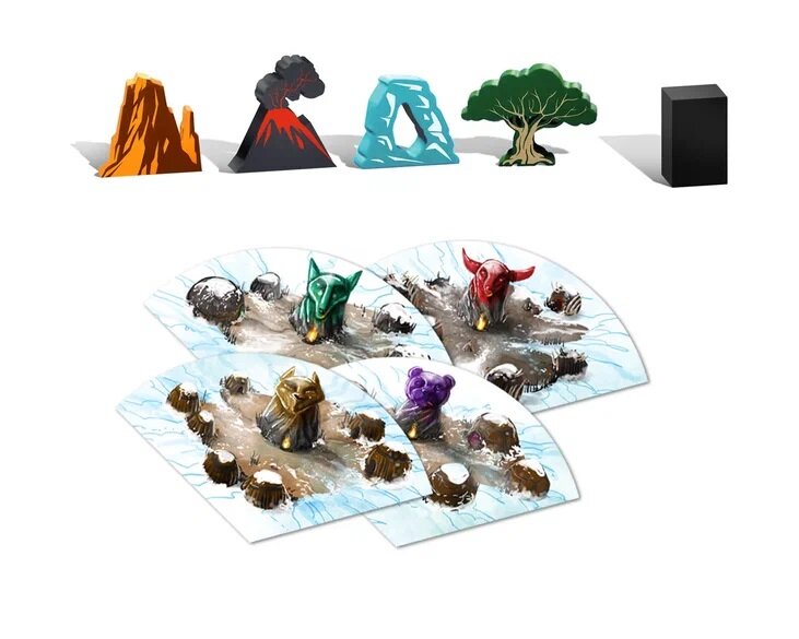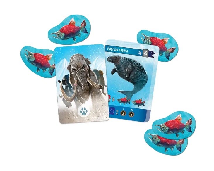 | Комплектация | тайл дельты реки; тайл истока реки; 3 тайла реки; 5 ориентиров; 5 карт ориентиров; 15 карт племени; 5 карт животных; 4 лодки; 15 жетонов рыб; 4 лагеря; жетон священного камня |
