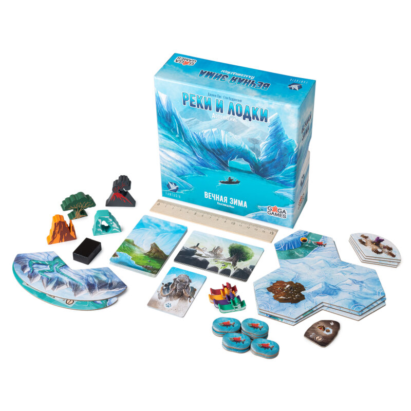 А вы думали погони на байдарках и рафтинг придумали уже ближе к современности? Как бы не так. Дополнение “Реки и лодки” для настольной игры “Вечная зима” предлагает нам такую необычную механику, несмотря на то, что действия происходят задолго до Нашей Эры. Кроме гонок по водяной глади, изменяется и принцип расселения племён, а также открываются новые способы перемещения и добычи ресурсов. Теперь можно сплавляться вниз по реке, ловить рыбу и наблюдать величественные красоты природы. Игрокам можно перемещаться по одной реке одновременно, но водный транспорт на стоянке усиливает влияние на тайл, что обостряет соперничество.
