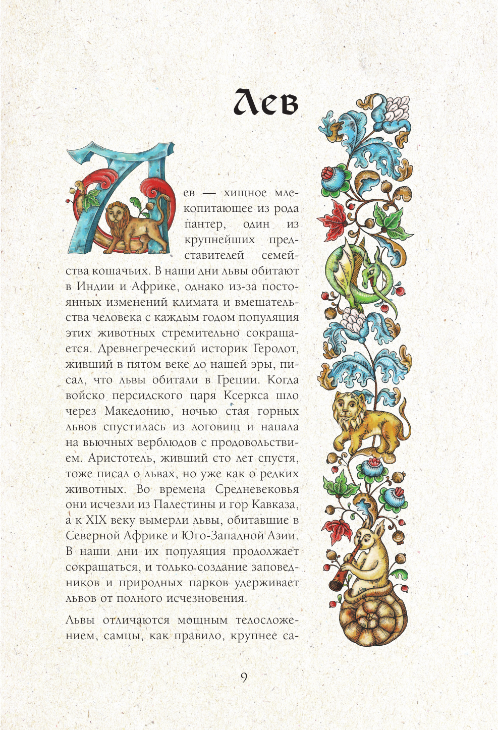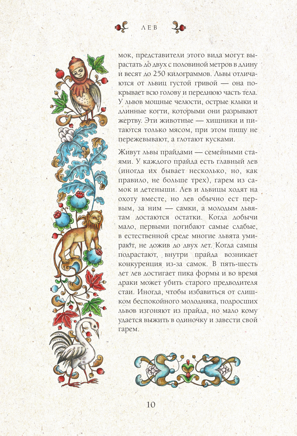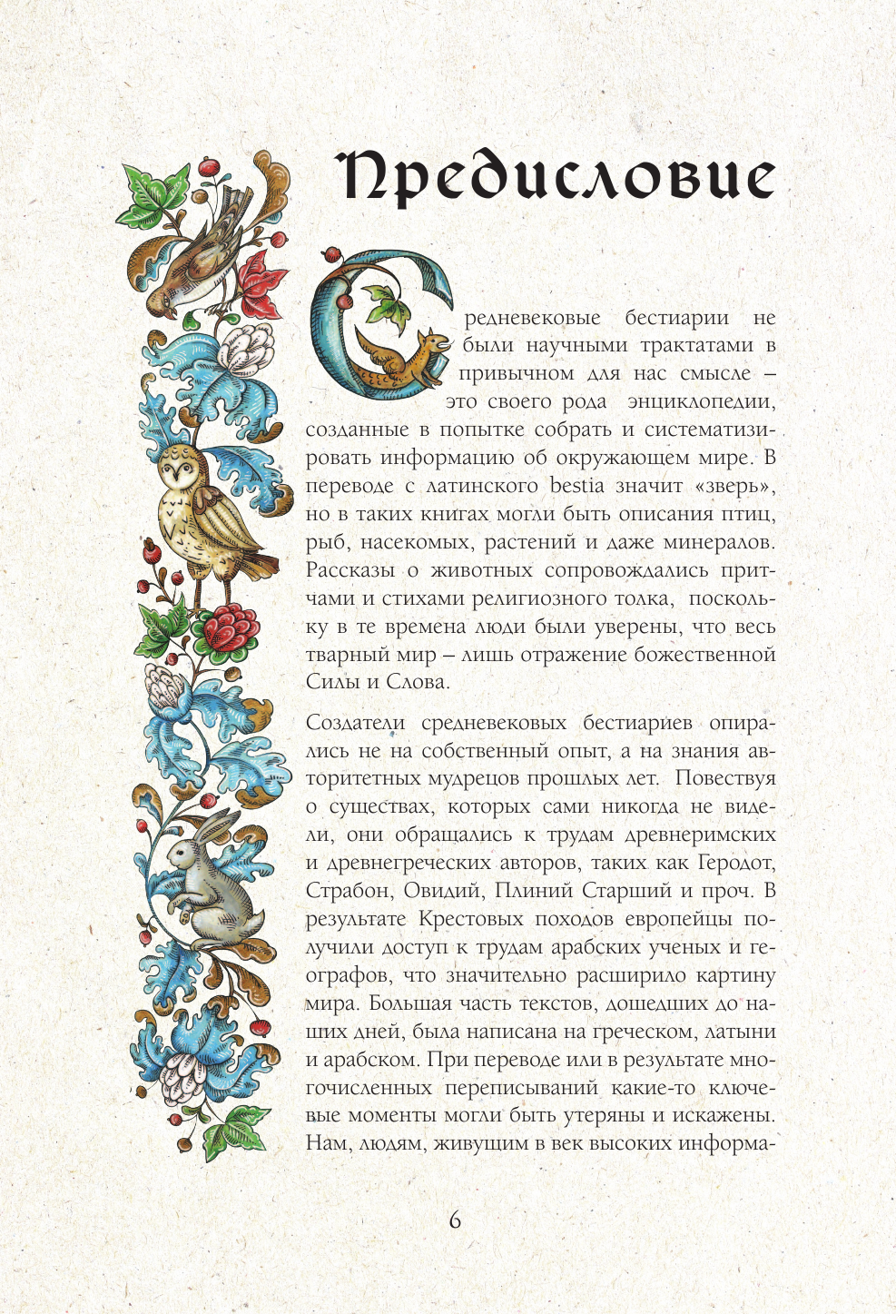Средневековые бестиарии не были научными трактатами в привычном для нас смысле – это своего рода энциклопедии, созданные в попытке собрать и систематизировать информацию об окружающем мире. В переводе с латинского bestia значит "зверь", но в таких книгах могли быть описания птиц, рыб, насекомых, растений и даже минералов. Рассказы о животных могли сопровождаться притчами и даже стихами религиозного толка, поскольку в те времена люди были уверены, что весь живой мир – лишь отражение божественной Силы и Слова. В Новом Средневековом Бестиарии собраны воедино данные из разных миров. Это дает широкий спектр представлений, которые сложились о животных с древних времен до наших дней. При создании книги были использованы труды древних авторов, которые с высокой степенью достоверности описывали повадки и ореол обитания животных. В ней так же собраны мифы и легенды Средневековья.