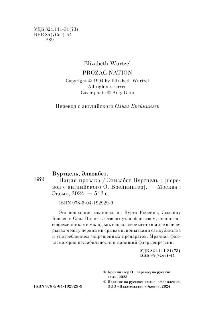Книга: Нация прозака (Элизабет Вуртцель); Эксмо, Редакция 1, 2023