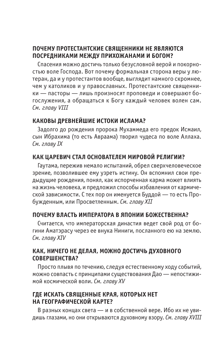 В мире существует множество религий и их классификаций. У каждой из них своя история, свой древнейший свод законов, правил, нравственных ориентиров, но все они неразрывно связаны с общечеловеческими вопросами, историей и культурой. Сколько всего в мире религий? Как они зародились и развивались? Где находятся священные места, привлекающие тысячи и тысячи паломников? Вооружившись знаниями, полученными из этой книги, читатель легко сможет найти ответы на эти и другие вопросы.