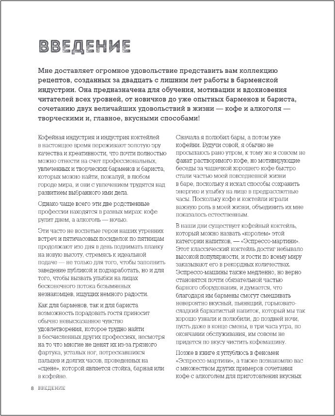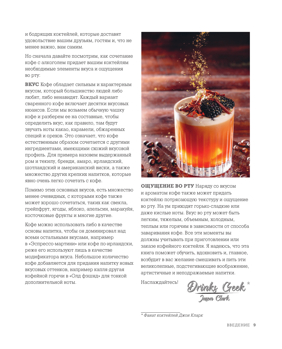 Книга предназначена для обучения, мотивации и вдохновения читателей всех уровней, от новичков до уже опытных барменов и бариста, сочетанию двух величайших удовольствий в жизни — кофе и алкоголя — творческими и, главное, вкусными способами!