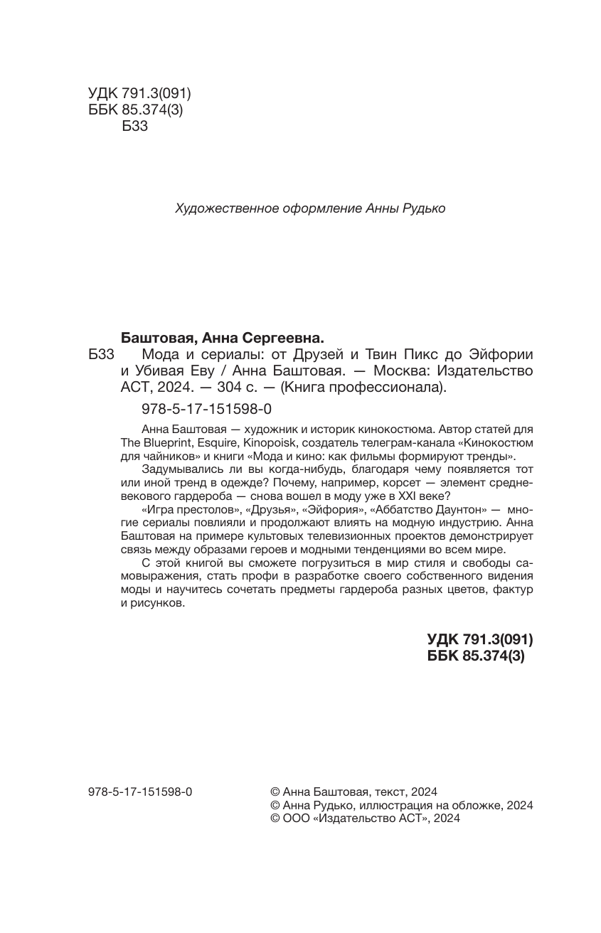 Мода и сериалы: от Друзей и Твин Пикс до Эйфории и Дома Дракона (Анна Баштовая); Издательство АСТ, 2024