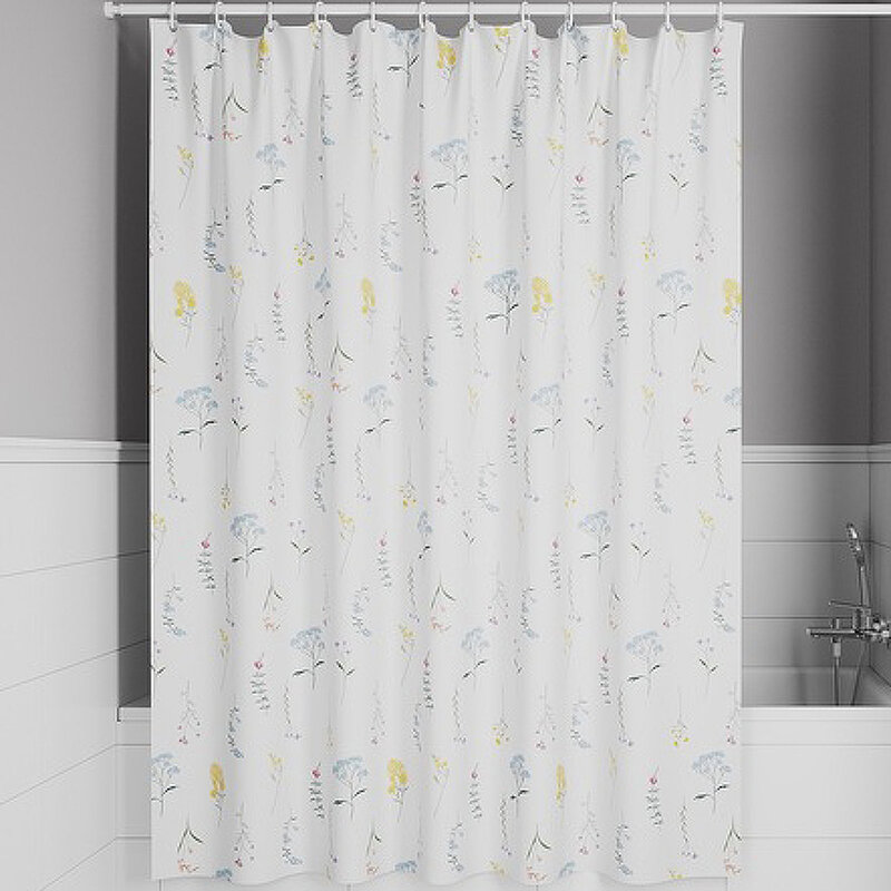 Текстильная штора для ванной белого цвета с ярким разноцветным растительным принтом.• Изготовлена из износостойкого полиэстера с усиленной водонепроницаемой пропиткой. При попадании на ткань вода не впитывается, а скатывается каплями, даже при сильном напоре воды. • В комплекте 12 колец С-формы из прозрачного пластика. • По верхнему краю расположены 12 прозрачных пластиковых люверсов. • Штора имеет утяжеляющую нить по нижнему краю, которая позволяет избежать задирания ткани.• Легко ухаживать: шторку для ванной комнаты можно стирать в стиральной машине в деликатном режиме и гладить утюгом на минимальной температуре.Гарантия на текстильные аксессуары IDDIS® – 1 год.