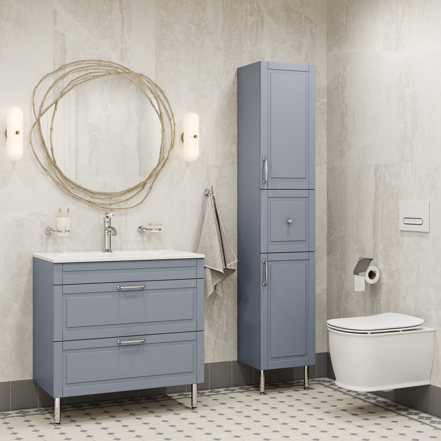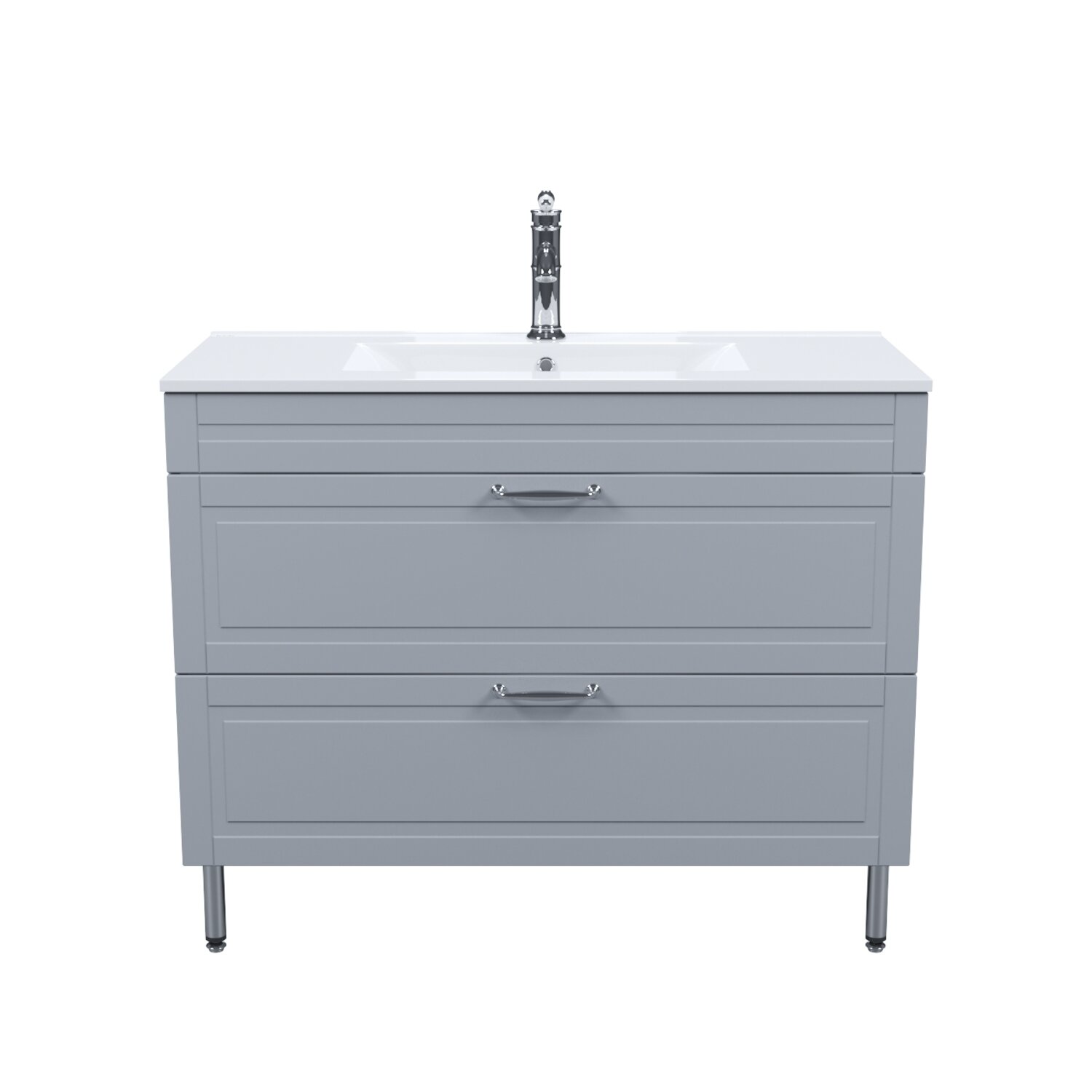 Вместительная напольная тумба Oxford изысканного светло-серого цвета – модное сочетание классического стиля и стиля ретро. Она органично впишется в интерьер благодаря элегантному фрезерованному фасаду и узнаваемому дизайну. В комплекте плоский эргономичный умывальник. Два выдвижных ящика закрываются плавно и бесшумно благодаря скрытым направляющим с доводчиками немецкого производства. Ограничитель под сифон в верхнем ящике позволяет эффективнее использовать его пространство. Хромированные ножки и ручки дополняют цвет фасада и сочетаются с дизайном одноименных смесителей Iddis и смесителей в стиле ретро. Несложно подобрать все необходимое для создания гармоничного интерьера. Поверхность фасадов бархатистая, приятная на ощупь. Это ощущение создает полуматовая полимерная эмаль с эффектом soft touch. Фурнитура рассчитана на 30 000 открываний – это более 10 лет исправной работы.