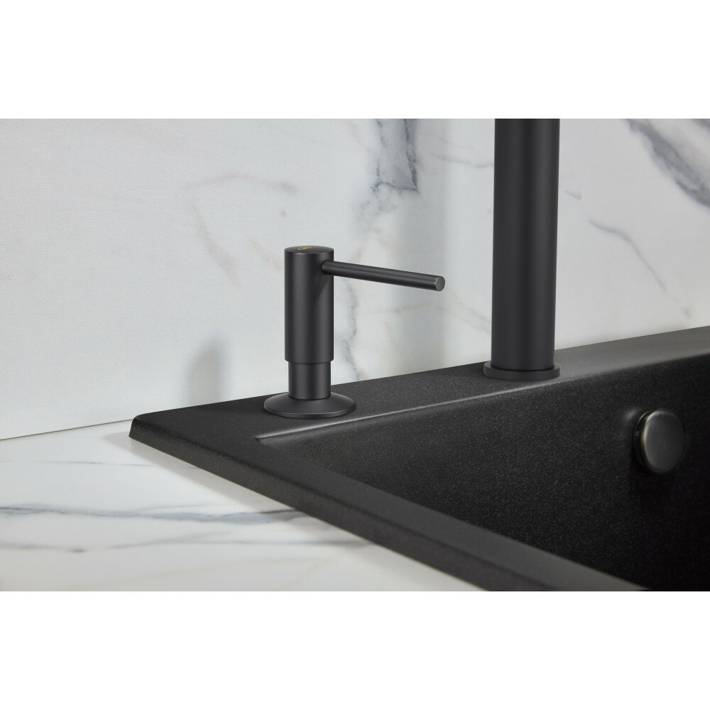 Механический врезной дозатор для мыла и моющего средства Milacio MC.931.TB, выполненный в однородном черном матовом цвете без каких-либо добавлений - стильное решение и яркая изюминка в вашем интерьере. Современный минималистичный дизайн подчеркнет достоинства вашей кухни. Данная модель изготовлена из латуни - сплава меди, цинка и олова - качественного материала, устойчивого к любым повреждениям. В отличие от пластиковых диспенсеров латунные изделия выглядят дороже и роскошнее, а на практике показывают себя надежнее. При должном обращении они должны служить не меньше, чем смесители или даже кухонные мойки.