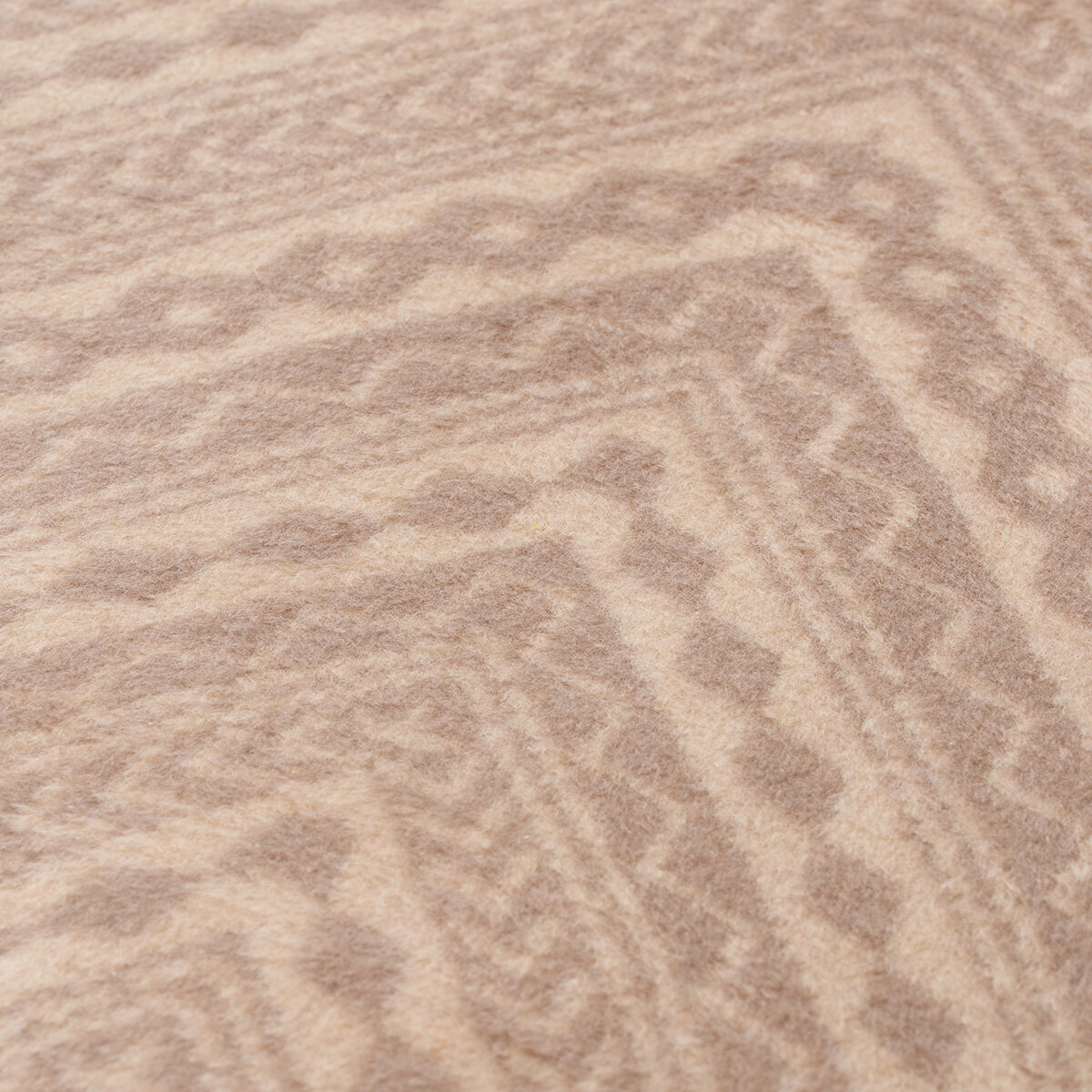 Этот роскошный плед выполнен в бежевых тонах. Украшен золотисто-коричневым органичным геометрическим орнаментом на кремовом фоне. Края пледа декорированы бахромой.