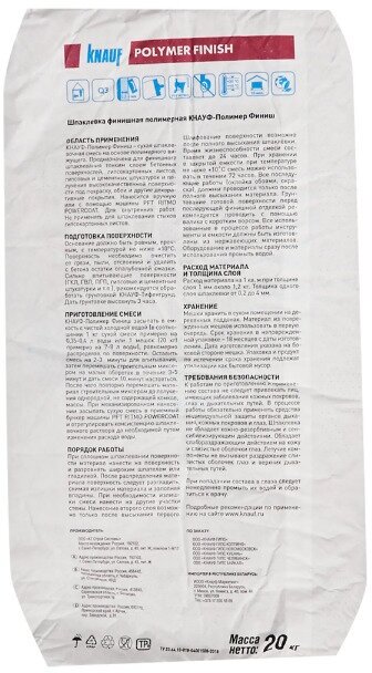- Шпаклевка полимерная Knauf Polymer Finish финишная Стройбаза КУБ