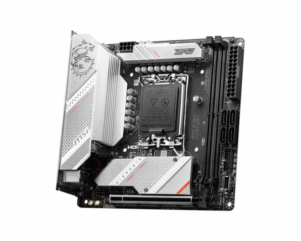 Материнская плата mini-ITX MSI (LGA1700 B760 2*DDR5 (7200) 4*SATA 6G RAID 2*M.2 PCIE 2.5Glan WiFi BT HDMI DP USB Type-C MPG B760I EDGE WIFI