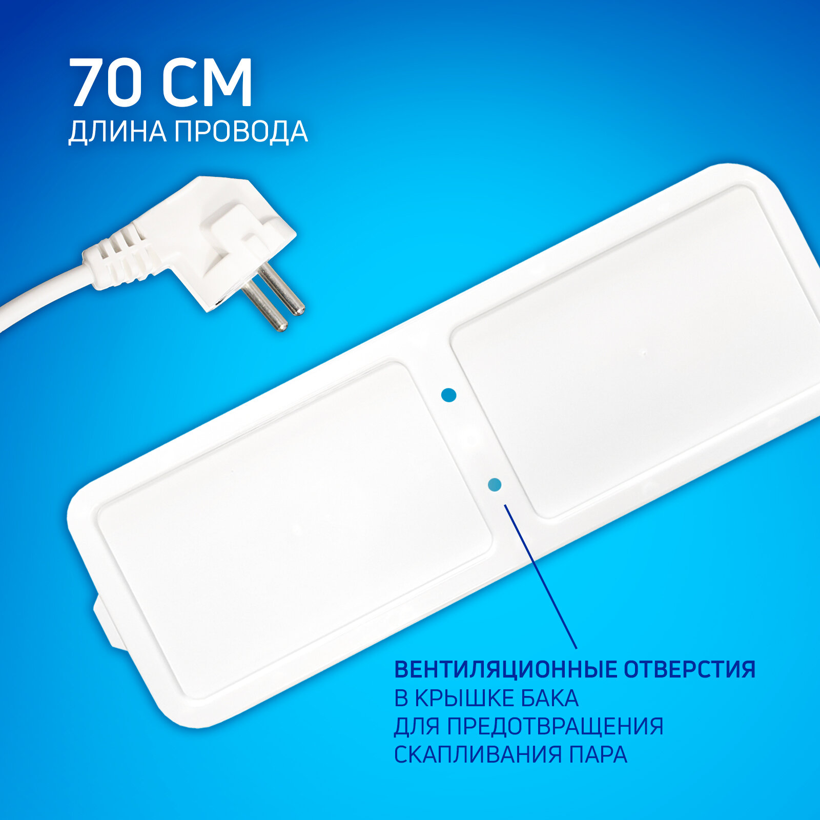 Водонагреватель выполнен из высококачественного пластика. Нагревательный элемент расположен ниже уровня слива воды, что позволяет избежать его перегорания. Водонагреватель способен нагреть воду до 60-65 градусов, а встроенный термостат отключает нагрев и поддерживает заданное значение на протяжение всей работы водонагревателя