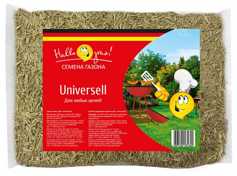 Семена ГазонCity Hallo, gras! Universell Gras - специально подобранная смесь трав для выращивания универсального газона. Сорта российских и немецких трав обладают различными свойствами, что позволяет вырастить густой и ровный газон на участках с различной освещенностью и плодородностью почвы.