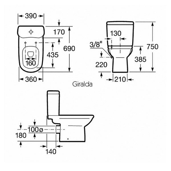 Компактный бачок Roca Giralda идет к модели унитаза.