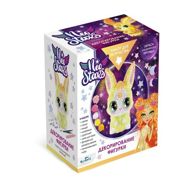 Космический набор от Neo Stars для декорирования фигурки стразами. В галактике Neo Stars существует космический набор для творчества, который позволяет погрузиться в мир невероятных блесков и великолепия. В его центре находится магическая фигурка, ожидающая своего создателя, чтобы ожить и заблестеть сиянием тысячи драгоценных страз.