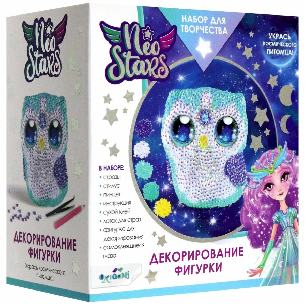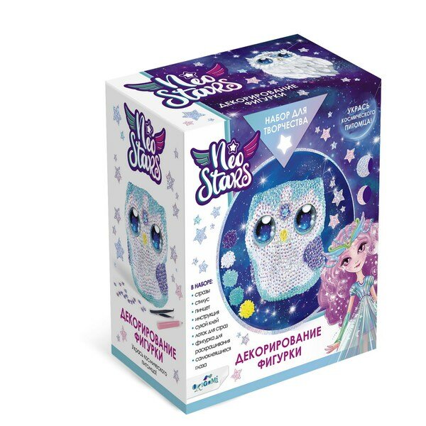 Космический набор от Neo Stars для декорирования фигурки стразами. В галактике Neo Stars существует космический набор для творчества, который позволяет погрузиться в мир невероятных блесков и великолепия. В его центре находится магическая фигурка, ожидающая своего создателя, чтобы ожить и заблестеть сиянием тысячи драгоценных страз.