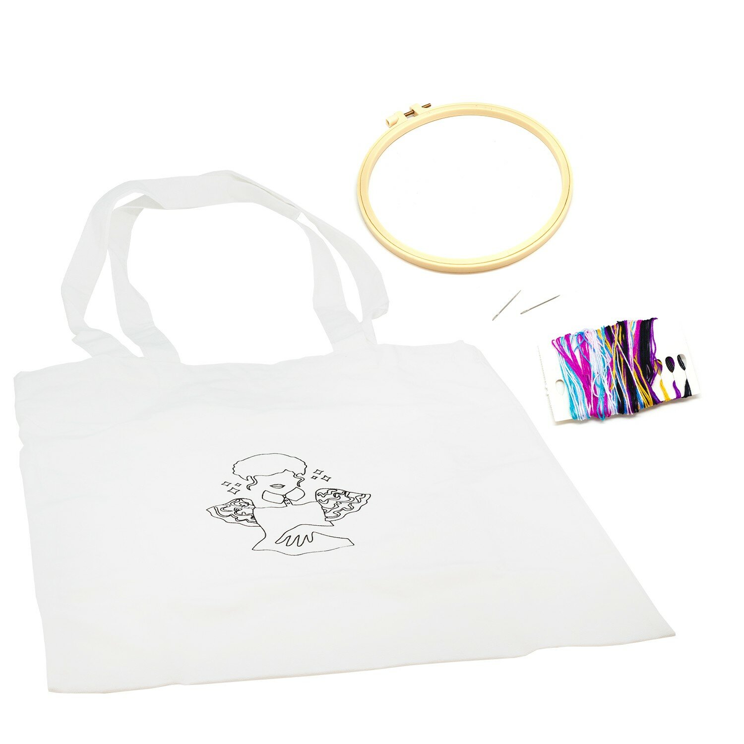 Wonderday. Вышивка на шоппере. Девушка ОРИГАМИ
