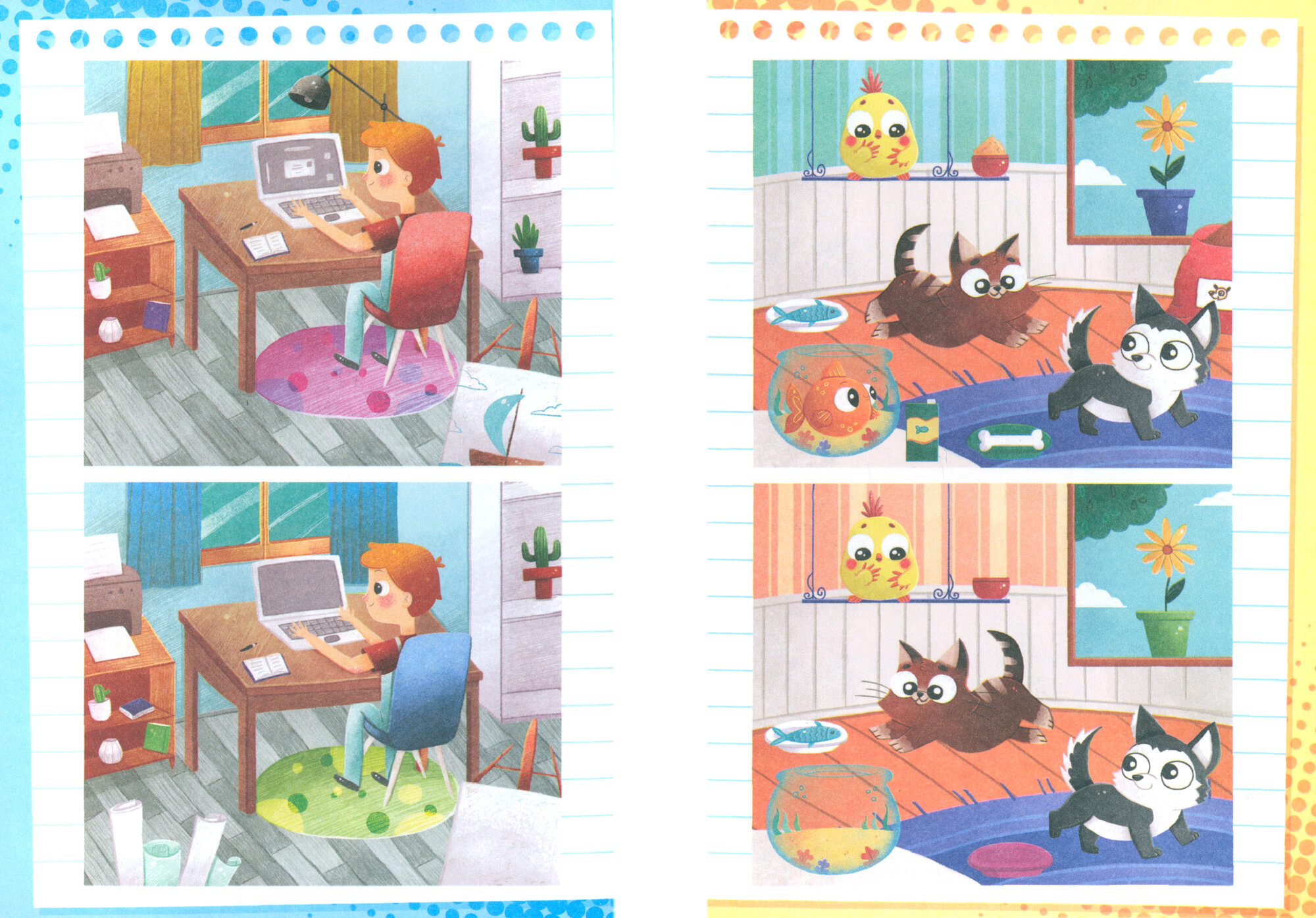 Проверь себя: сможешь ли ты найти 10 отличий на каждой странице? Сразись с друзьями на переменке: кто найдёт больше отличий, тот и победил. Будь внимателен: задания становятся сложнее к концу книги.