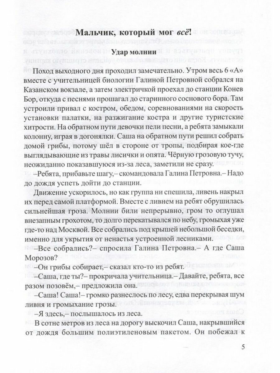 После удара молнии Саша Морозов приобрёл необычайные свойства. Он мог проходить сквозь стены, обладал телепатией и телепортацией. Такой агент очень заинтересовал ЦРУ и Пентагон. Им удалось выкрасть мальчика из страны и они стали изучать его способности, соблазняя мальчика большими деньгами. Но, оказавшись за рубежом, Саша не предал Родину. Хорошо освоив свои способности, он объявил ВОЙНУ США и легко выиграл её.