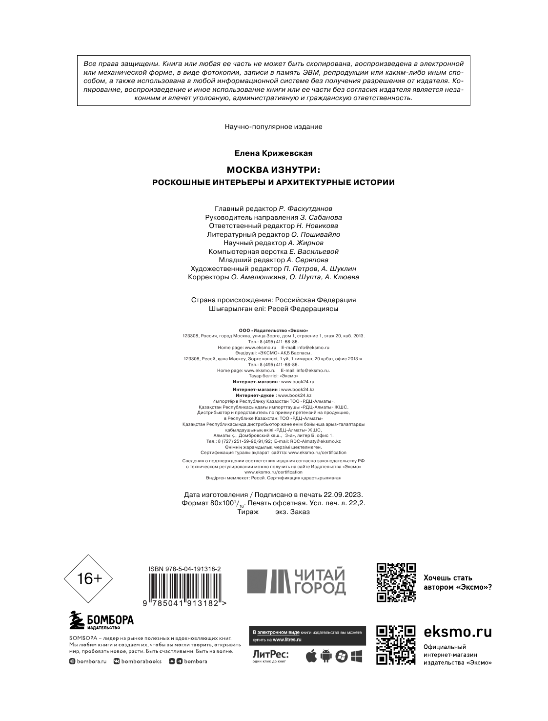 Москва изнутри. Роскошные интерьеры и архитектурные истории (Крижевская Е. Ю.); ООО "Издательство "Эксмо", 2023