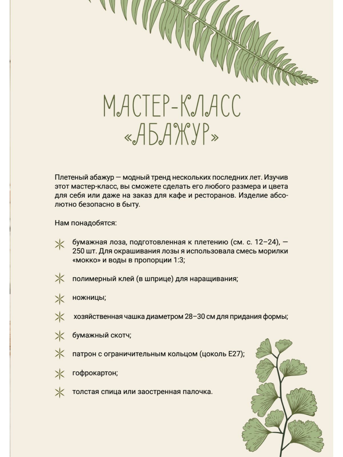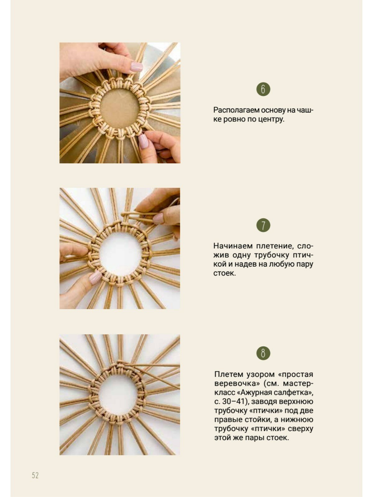 Чтобы кухня стала еще уютнее, достаточно добавить несколько деталей, сделанных своими руками: салфетки, хлебницу или абажур. Если вы заботитесь о природе и следите за модными дизайнерскими тенденциями, ваш выбор — плетение из бумажной лозы! Опытный мастер, создательница школы лозоплетения Татьяна Юрова познакомит вас с основами трендового хобби и покажет, как создать экологичные изделия, которые прекрасно впишутся в любой интерьер. Пошаговые мастер-классы с наглядными фотографиями будут понятны даже новичкам, а некоторые украшения, например кольцо для салфетки или панно из обрезков лозы, можно сделать вместе с детьми. Творить чудеса из бумаги легко — проверьте сами!