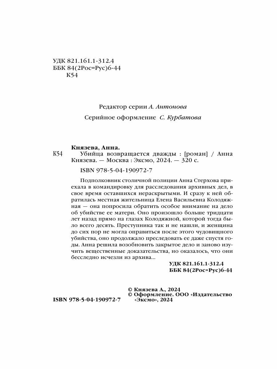 Убийца возвращается дважды (Князева Анна); ООО "Издательство "Эксмо", 2023