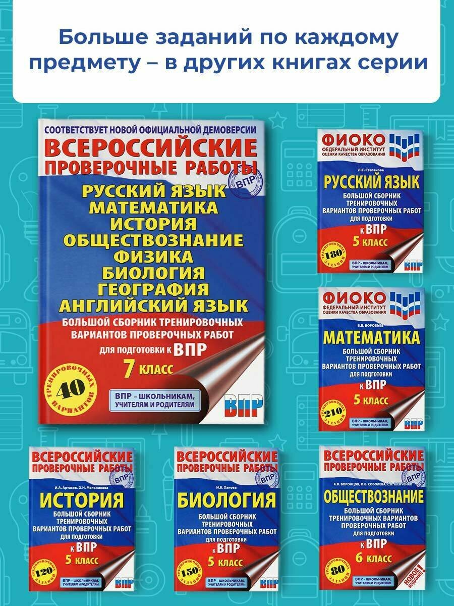 ВПР. 7 класс. 40 вариантов. Большой сборник (Гудкова Лидия Михайловна, Баранов Петр Анатольевич, Соловьева Юлия Алексеевна, Терентьева Ольга Валентиновна, Степанова Людмила Сергеевна, Шевченко Сергей Владимирович, Воронцов Александр Викторович, Соболева Ольга Борисовна, Лобжанидзе Наталья Евгеньевна, Острикова Нина Игоревна, Сорокина Вера Александровна, Коновалова Надежда Александровна); ИЗДАТЕЛЬСТВО "АСТ", 2024