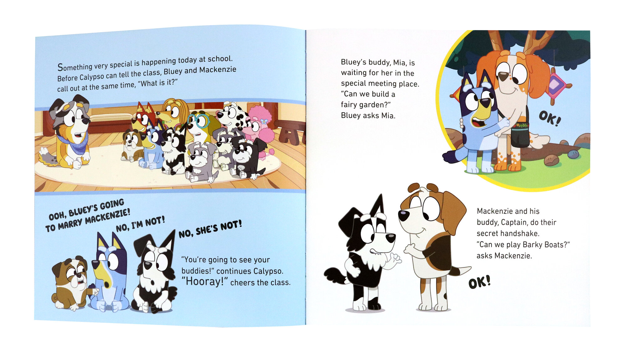 Bluey and Mackenzie are spending the day with their buddies. They're excited to play Barky Boats and build a fairy garden! Their buddies Mia and Captain seem distracted - will they still have time to play with Bluey and Mackenzie?