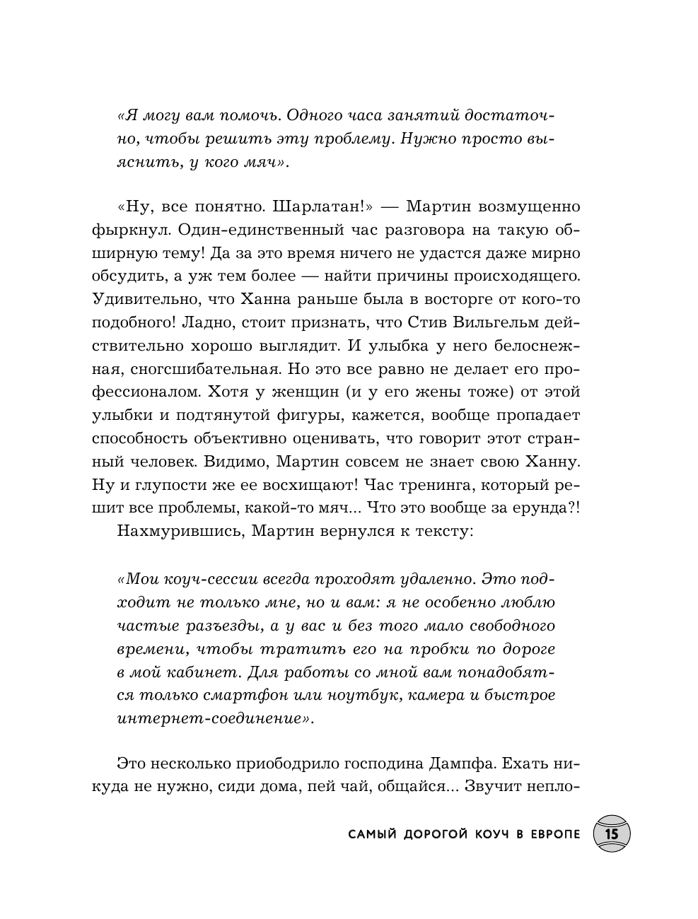 «Коучинговый подход в управлении сотрудниками позволяет не только развить их самостоятельность и инициативность, но и удержать в компании ценные кадры. Автору книги удалось в легкой и одновременно поучительной форме бизнес-романа показать все нюансы применения коучинга на рабочем месте, чему я была приятно удивлена. Прочитайте книгу, и вы сумеете сделать из своих сотрудников партнеров в достижении общих результатов». — Виктория Зайцева, сертифицированный коуч icf, преподаватель, бизнес-тренер с 15-летним стажем, автор трех бестселлеров на Литрес