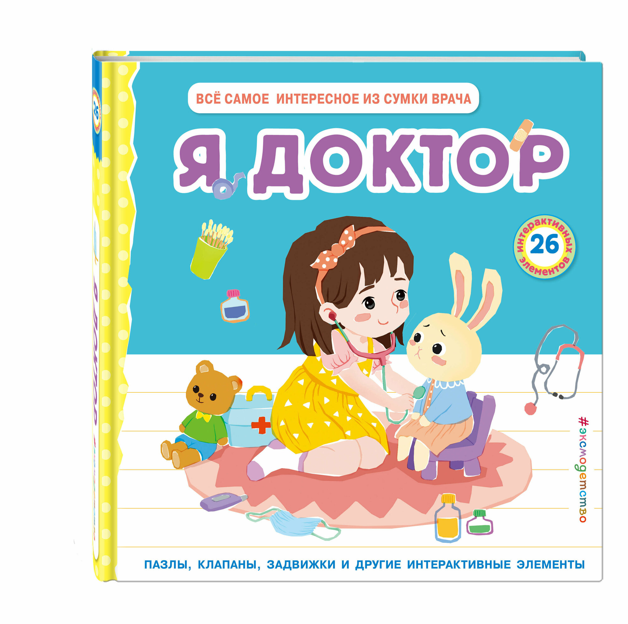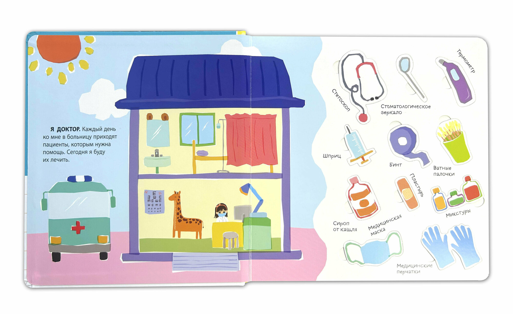 Играем в доктора! Невероятно увлекательная 3D-книга для детей — на каждом развороте расположены интерактивные элементы, которые выглядят и работают как настоящие медицинские инструменты.