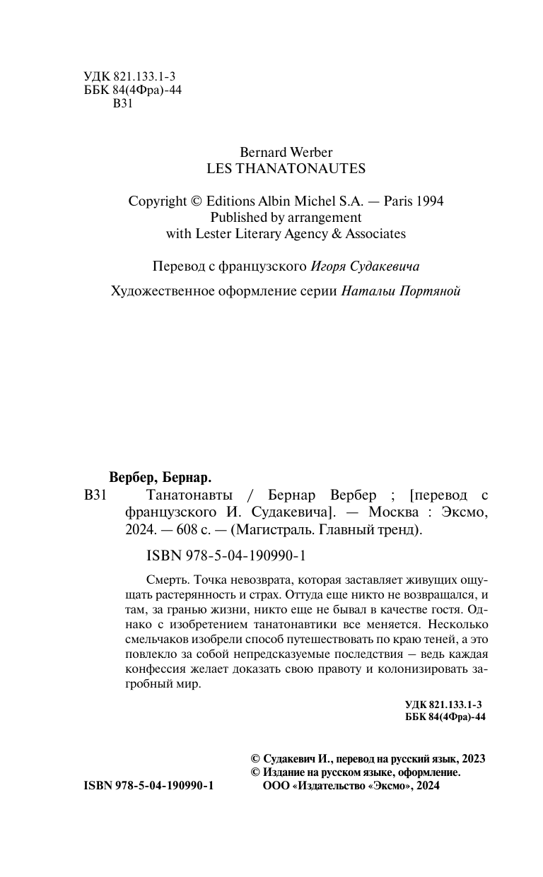 Книга: Танатонавты (Вербер Бернар); ООО "Издательство "Эксмо", 2024