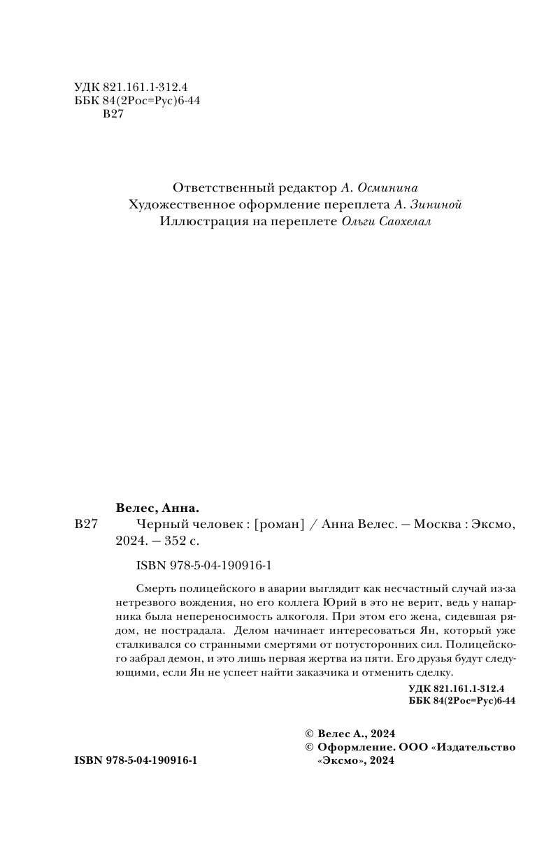 Книга: Черный человек (Велес Анна); ООО "Издательство "Эксмо", 2023