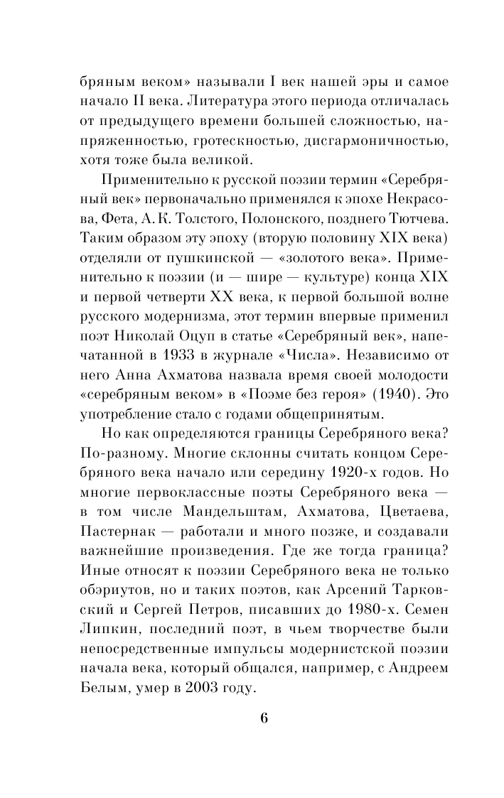 Серебряный век Удивительный период в истории отечественной культуры, начавшийся в конце ХIХ века и прерванный октябрьским переворотом. Это было время интеллектуальных прозрений и социальных потрясений, получивших широкий отклик в искусстве и литературе. Наряду с шедеврами Александра Блока и Анны Ахматовой, Сергея Есенина и Марины Цветаевой читатель найдет в сборнике стихотворения десятков других мастеров стиха — от философа Владимира Соловьёва до эксцентрика и эгофутуриста Константина Олимпова. Перед вами — своего рода лирический дневник эпохи, которая, по словам Николая Оцупа, "по силе и энергии, а также по обилию удивительных созданий, почти не имеет аналогии на Западе: это как бы стиснутые в три десятилетия явления, занявшие, например, во Франции весь девятнадцатый и начало двадцатого века".