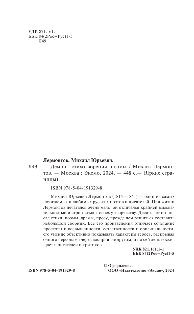 Демон. Стихотворения. Поэмы (Михаил Лермонтов); Эксмо, Редакция 1, 2023